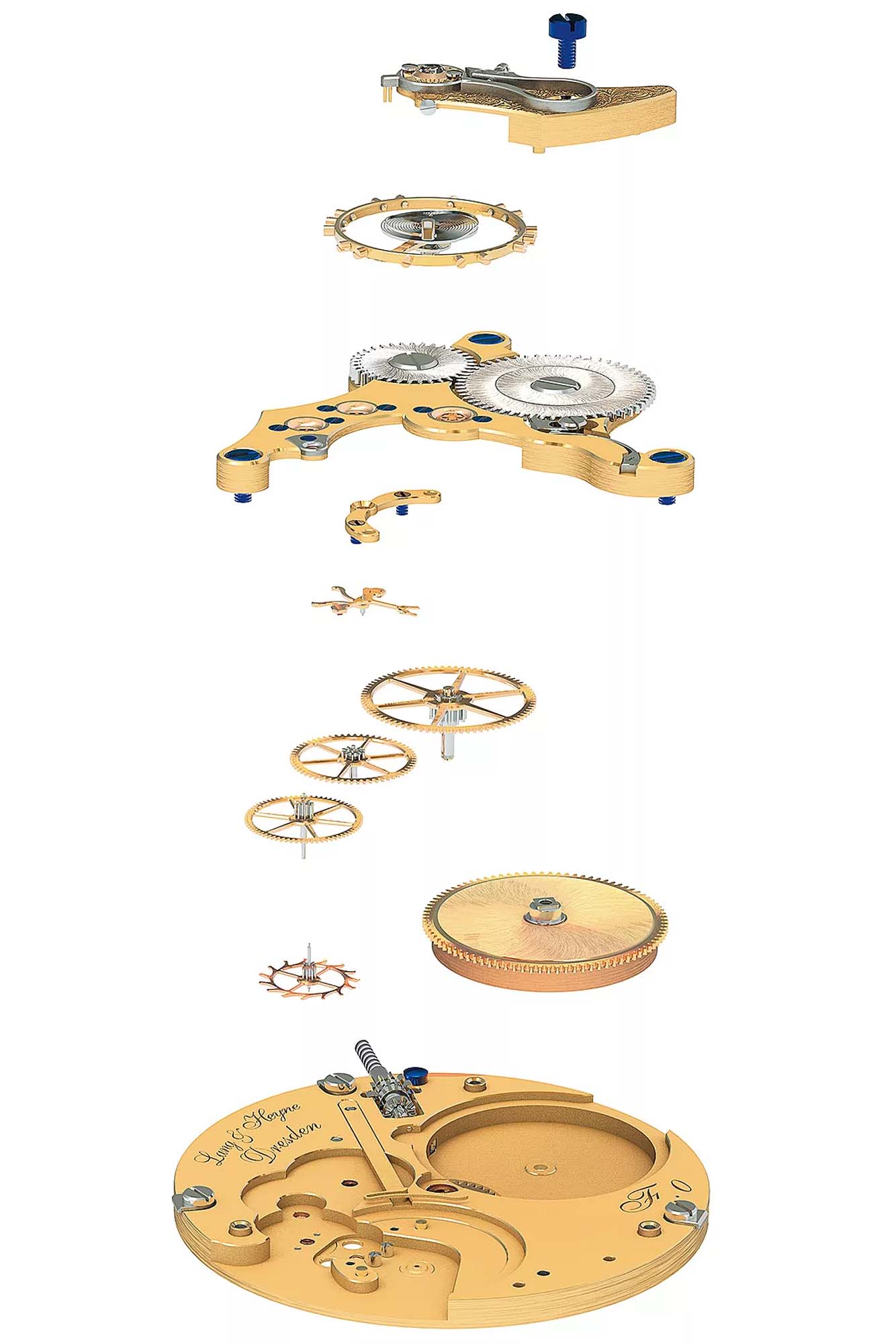 The clever use of different metal colors and the accentuation of the contours through the beveling creates a clearly recognizable structure in the overall appearance of the movement. The aim is to create a timelessly beautiful timepiece that is suitable for everyday use.